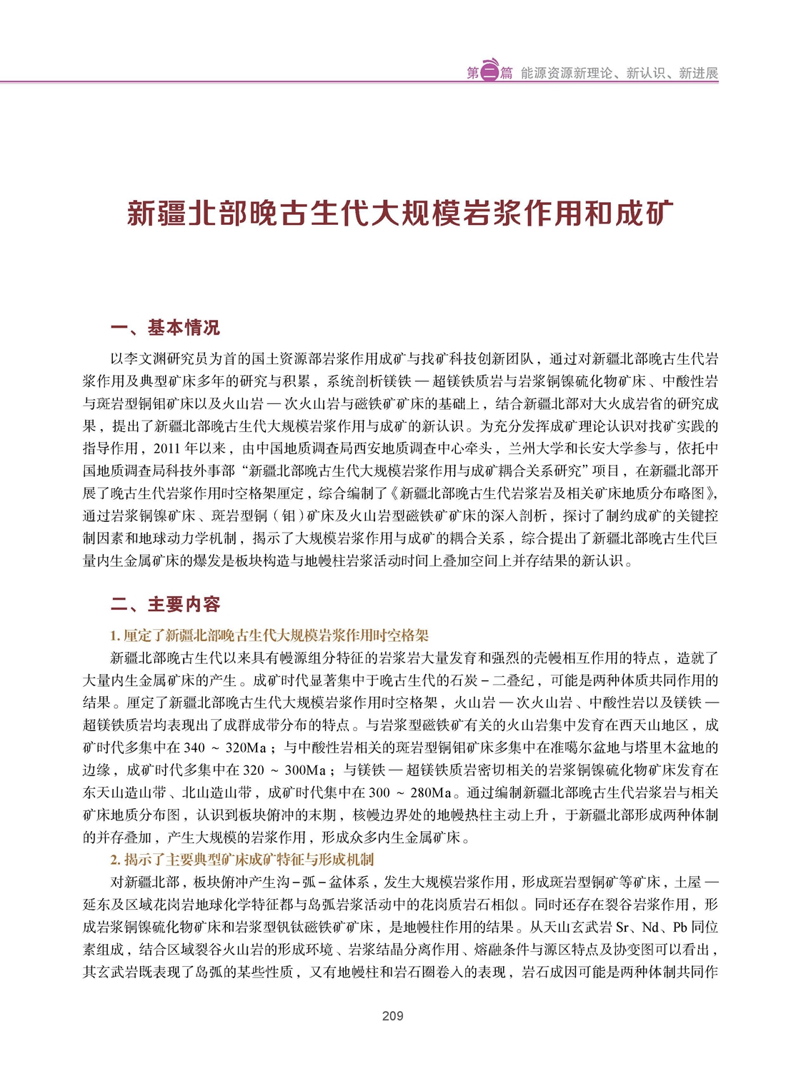新疆北部晚古生代大规模岩浆作用和成矿