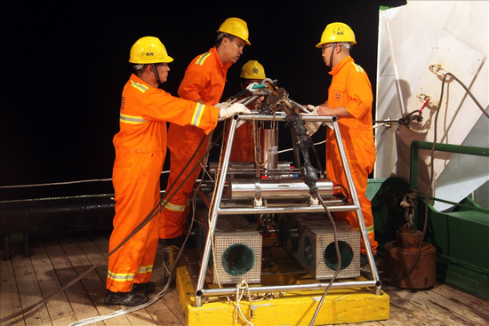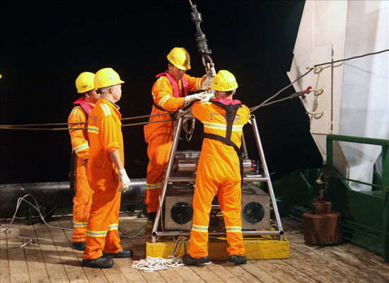 赶紧穿起工作服、安全帽,抓起相机、拿起工作鞋,记者奔向位于三楼的后甲板,那里是作业区。这次将投放大型生物观测与诱捕系统,纯国产的,是该系统在大洋科考中的首次应用。