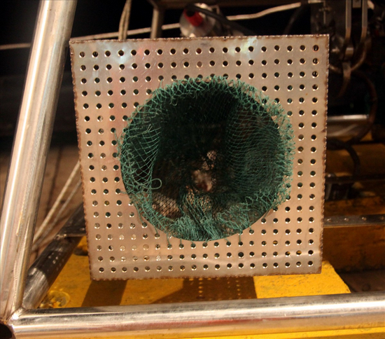 靠近诱捕器时,一股强烈的腥臭味扑鼻而来。这就是诱饵了,船上专门用鱼虾做的。届时,这股味道将吸引海底生物向诱捕器靠近。