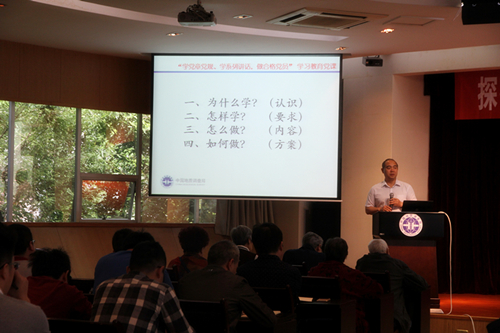 会议指出“两学一做”学习教育是全面从严治党的重要部署,是推动管党治党工作向基层延伸的重要举措,是加强党的思想政治建设的重要实践,也是推进地质调查改革发展的现实需要。全体党员要全面准确地学习党章党规,深入系统地学习系列讲话,要深刻领会,抓好贯彻落实。特别是中层干部更要严格要求自己,深刻把握“两个先锋队”的本质和使命,做好模范带头作用。