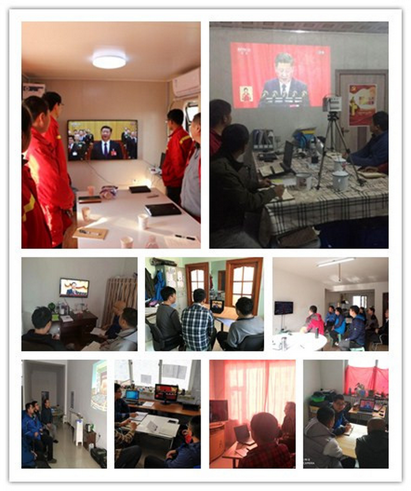 松辽盆地页岩油调查现场指挥部全体人员在松页油1井现场收看了十九大实况,聆听了习近平同志代表第十八届中央委员会所作的报告。在座谈时大家一致认为,习总书记的报告,是我们党团结和带领全国各族人民在新时代奋勇前进的政治宣言和行动纲领。大家纷纷表示,听了习总书记的报告深受鼓舞,我们一定要把思想和行动迅速统一到十九大报告上来,不忘初心、继续前进,以高产工业油流为核心目标,勇于创新、敢于突破,实现松辽盆地页岩油调查的理论创新和技术突破,为百年大庆建设和振兴东北老工业基地贡献力量,以更加优异的成绩迎接党的十九大胜利召开。