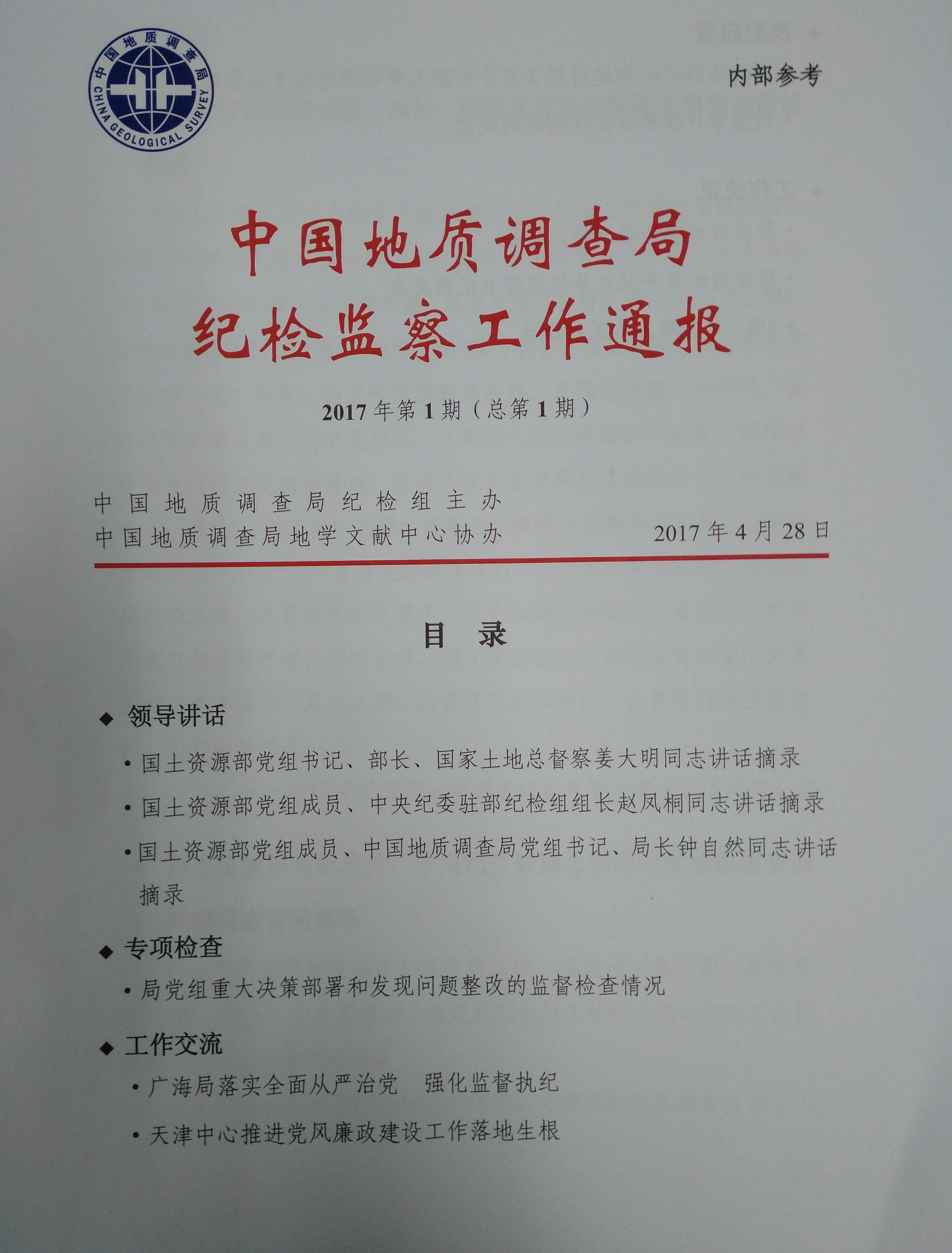 《中国地质调查局纪检监察工作通报》创刊号