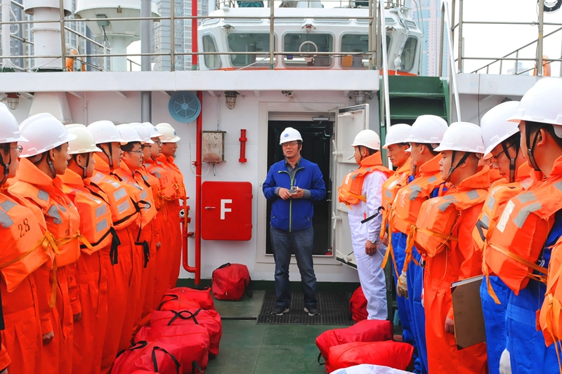 检查组现场察看了“业治铮”号调查船组织的消防和逃生演练,对调查仪器设备、施工人员安全与质量责任落实、消防救生设施、通讯设备、生活饮食卫生、劳保防护以及救生用品的配备等进行了检查,听取了施工负责人关于项目施工准备情况的汇报,并召开了船上安全检查工作会议。