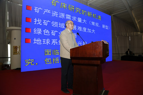 陈毓川院士在致辞中表示,需加大科技支持找矿突破力度,希望科研院所将地质科学研究理论与矿山勘查一线工作紧密结合,在野外现场解决找矿关键问题,结合现场实际指导找矿攻关,以科学技术驱动地质找矿突破。并就如何实现找矿突破,未来如何保持地质找矿工作的平稳发展与与会者进行了交流。