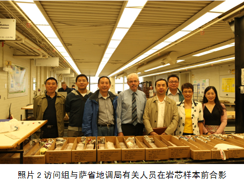 访问组在萨斯喀彻温省经济部地质调查局受到首席地质师Gary Delaney博士,国际合作处张钧博士及钾盐首席地质师杨潮博士的热情接待。杨潮博士代表Gary Delaney博士向访问组介绍了萨省的矿产资源分布情况,重点介绍了Elk Point盆地钾盐矿床成因、勘探与开发现状;刘成林研究员从中国国内钾盐资源开发现状、中国海相盆地勘探现状和中国未来钾盐资源展望三个方面也做了介绍,双方就互相关心和关注的问题进行了深入沟通和交流,参与交流的还有兖煤加拿大钾盐资源公司有关人员。会后,访问团参观了萨省地调局岩芯库、考察了索西钾盐矿区、北环岩芯库,并对萨省钾肥公司(PCS)在Patience Lake 和Vanscoy 的钾矿区周边进行了野外考察。