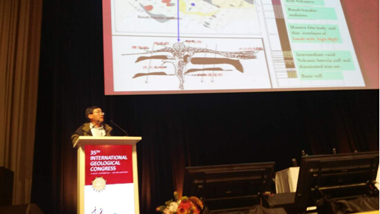 本届大会上,西安地调中心与乌兹别克斯坦国家地质矿产研究所联合,成功申请并组织了“中亚天山成矿带及邻近区域地球动力学及成矿过程(Geodynamic and metallogenic processes in the Tianshanorogen and adjacent areas, Central Asia)”专题研讨会,共有来自中国、乌兹别克斯坦、俄罗斯、法国、英国等近30位国内外知名学者作了专题发言,围绕中亚天山造山带的形成、演化和区域成矿规律进行了深入研讨。其中,西安地调中心代表王涛研究员介绍了中亚造山带西南段花岗岩Nd-Hf同位素填图最新进展及其对中亚大陆地壳结构与生长的指示意义;马中平研究员探讨了有关中国西天山晚古生代火山岩型铁矿形成的地球动力学背景、岩浆作用过程及成矿条件;翁凯博士对近年来西安地调中心在新疆北部古陆块组成及拼合过程方面的研究进行了汇报;刘江博士结合最新的文献资料及遥感数据,对南天山混杂带中小尺度构造变形进行了精细解析;陈博博士介绍了西安地调中心在中国—吉尔吉斯天山对比研究方面取得的最新进展。这些汇报向国内外学者展示了西安地调中心近年来在天山及邻区取得的部分研究成果,提高了西安地调中心在天山地质矿产研究领域的国际影响力。