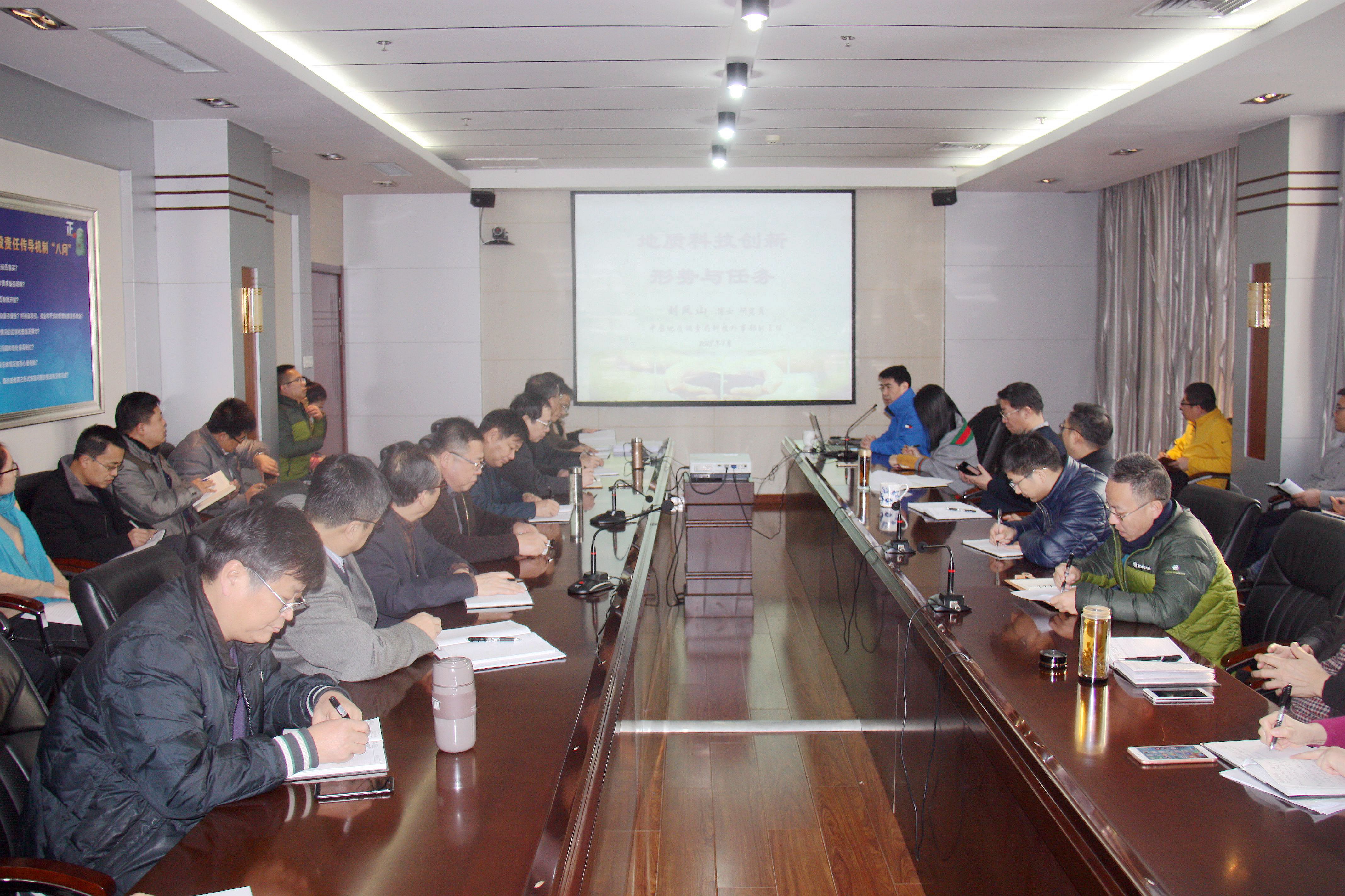 刘凤山副主任全面介绍了十八大以来地质科技创新取得的成果,深入分析了十九大对地质科技创新工作的新要求,详细解读了国家科技体制改革政策,对国家五大科技平台项目申报、部局科技创新平台建设、科技成果转化、科普工作开展等工作给出了具体的操作建议。讲座历时两个半小时,内容丰富,信息量大,工作指导性强,与会人员认真聆听,感触颇深、收获较大。