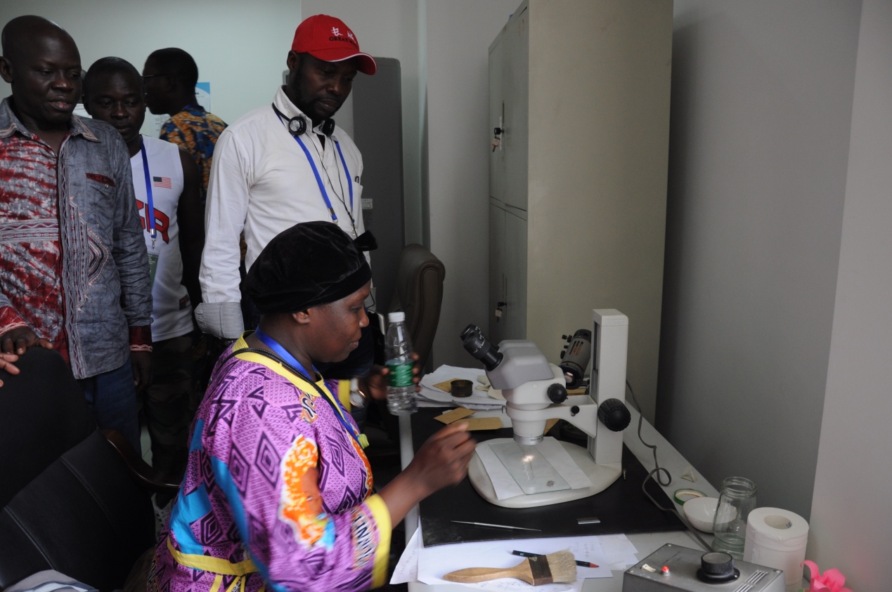 上午,中非代表团参观了武汉地调中心同位素实验室和实验测试室,听取了实验室仪器设备、技术力量、主要分析测试方法及研究成果等情况介绍。外宾对两个实验室先进的实验仪器设备表现出浓厚兴趣,与实验室工作人员进行了深入细致的交流。随后,外宾参观了龙化石博物馆,在一件件珍贵的龙化石展品前驻足端详、听取讲解、合影留恋。