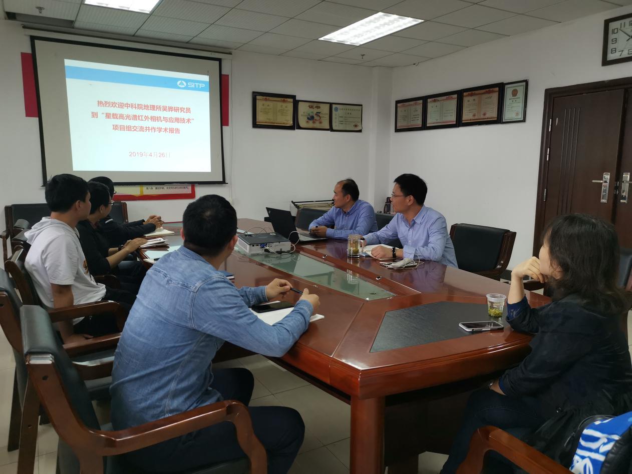 4月26日,为加快“星载高分辨率红外高光谱相机及应用技术”项目推进和合作交流,应自然资源部中国地质调查局武汉地质调查中心邀请,中国科学院地理科学与资源研究所吴骅研究员到项目组开展学术交流并作专题报告。