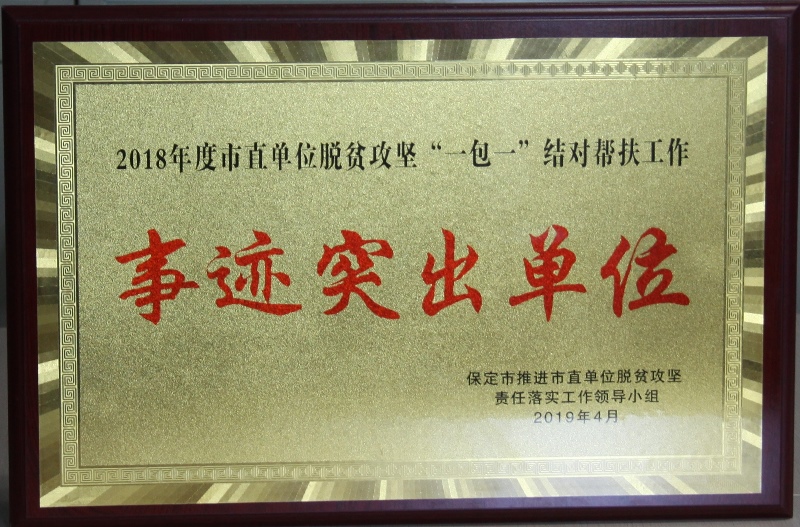 近日,在保定市推进市直单位脱贫攻坚责任落实工作领导小组开展的征集2018年度“一包一”结对帮扶工作事迹突出单位和个人的活动中,自然资源部中国地质调查局水文地质环境地质调查中心(以下简称“水环中心”)荣获“2018年度‘一包一’结对帮扶工作事迹突出单位”称号,驻村扶贫工作队的金枭豪同志、李强同志为事迹突出个人。