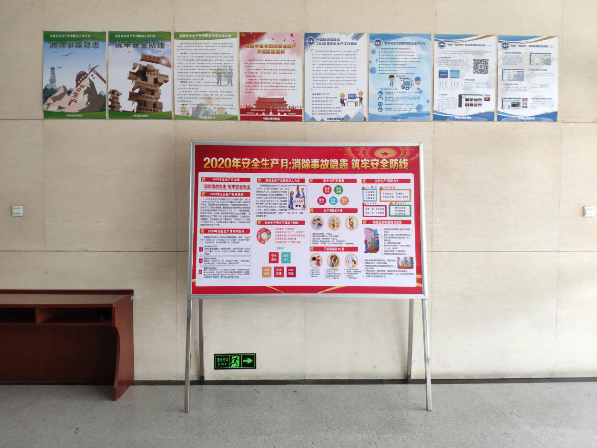 通过在机关办公区和野外施工地广泛张贴或悬挂安全标语、横幅、挂图及发放学习读本等方式,加强安全生产知识宣传教育。同时在全体干部职工建立安全理论学习微信群,及时推送学习要点,以确保活动的时效性。