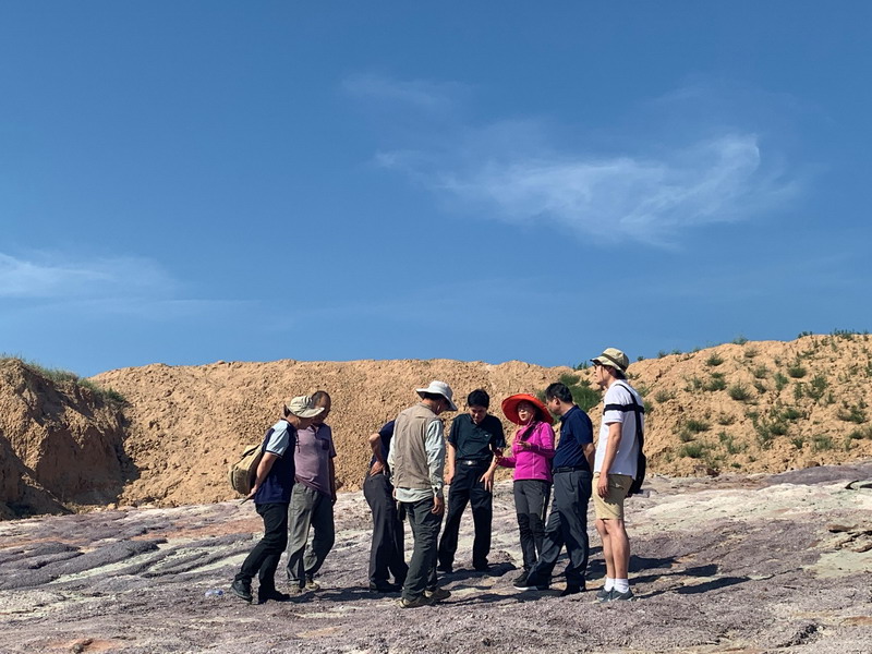 近日,自然资源部中国地质调查局地质环境监测院“全国重要古生物化石调查与保护监测示范”项目在张家口市宣化区洋河南岸一带新发现一处大规模以恐龙足迹为主的动植物遗迹群,为进一步确定其规模、价值及保护现状,环境监测院联合河北省区域地质调查院对该化石产地恐龙足迹、硅化木等地质遗迹进行了进一步的深入调查。
