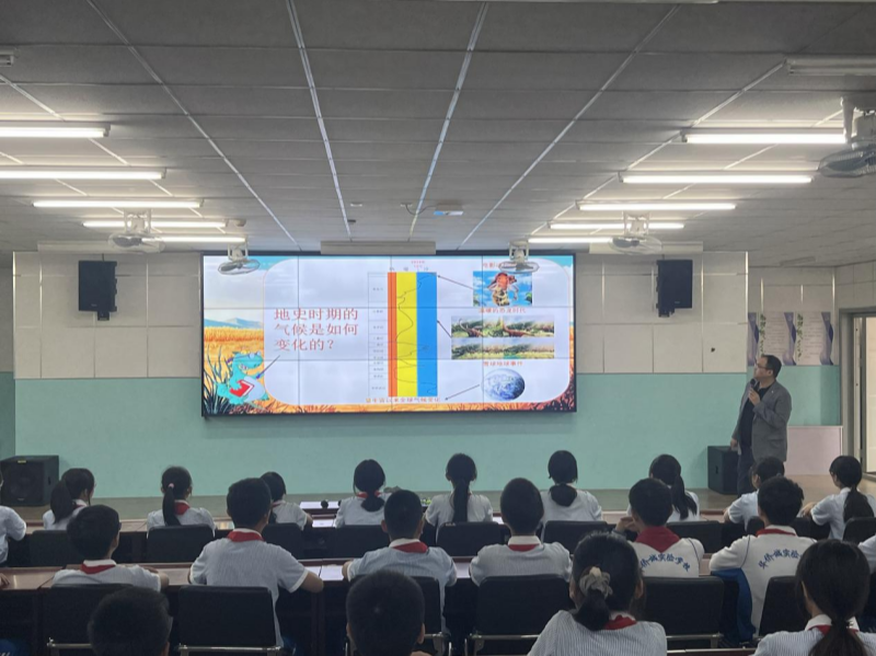 活动中,两名科研人员以科普讲座的方式为广大师生分享地球科学知识。张舜尧博士以“气候在变,地球在热——为什么我们要实现‘双碳’目标?”为题,介绍我国气候历史变化、温室效应产生机制,以及全球变暖对人类生活的影响;赵克强博士以“探秘金属镍——从日常到尖端科技的神奇元素”为题,介绍“镍”及其性质与用途,并以镍铜矿石样本做导电试验检测装置,给同学们上了一堂生动的实验课。