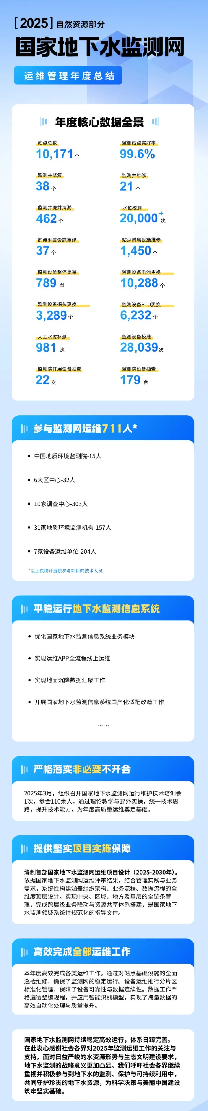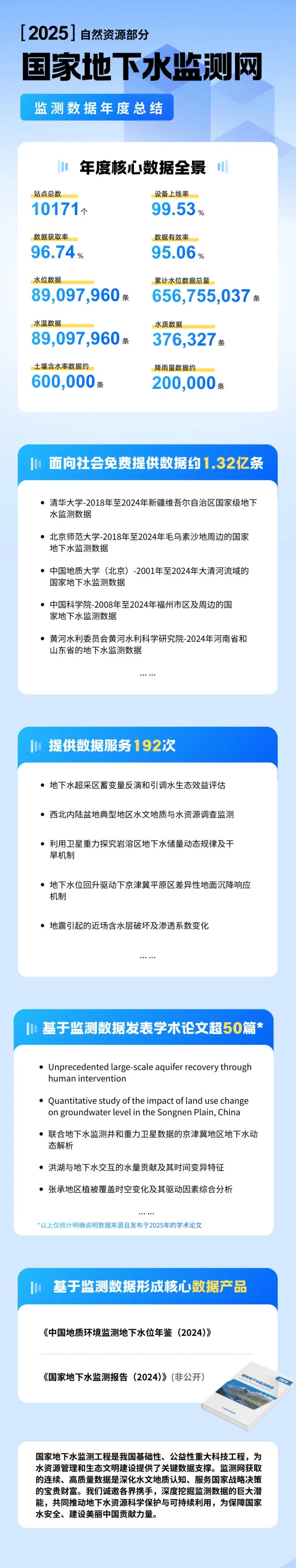 为更好地挖掘地下水监测数据应用潜力,推动地下水资源科学保护与可持续利用,中国地质环境监测院近日发布了2025年国家地下水监测网监测及维护数据。