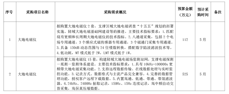 为便于供应商及时了解政府采购信息,根据《财政部关于开展政府采购意向公开工作的通知》(财库〔2020〕10号)等有关规定,现将中国地质科学院地球物理地球化学勘查研究所2026年5月至6月政府采购意向公开如下: