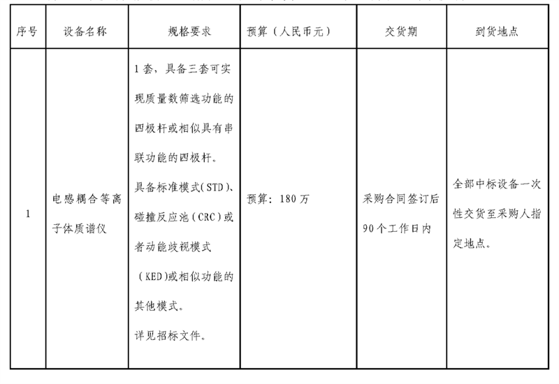 项目名称:电感耦合等离子体质谱仪项目