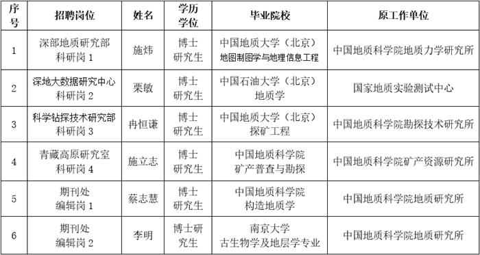 根据《中国地质科学院2022年交流选调工作人员公告》,经发布公告、资格审查、面试、考察等程序,院党委集体研究决定拟聘用人员,现公示如下: