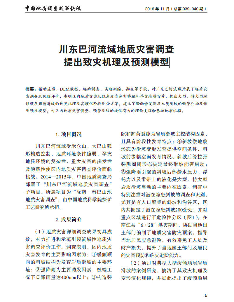 川东巴河流域地质灾害调查提出致灾机理及预测模型
