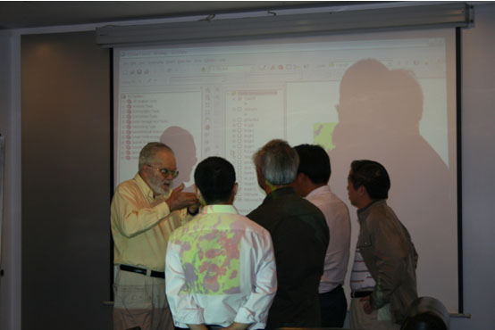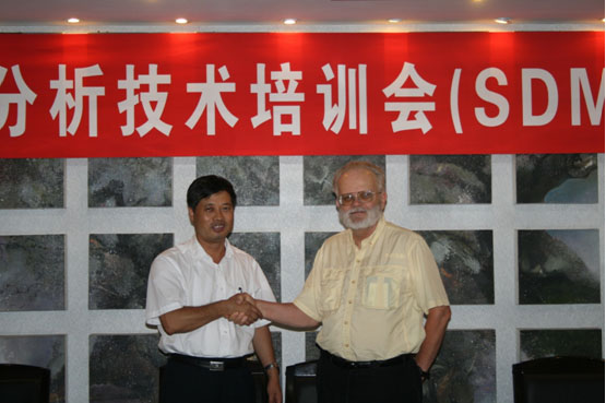 培训以空间分析建模软件(Spatial Data Modeller, SDM)为重点,邀请了美国地质调查局的Garry Raines博士进行了授课。Garry Raines博士是美国地质调查局的地质学家,长期从事数据解释、区域矿产资源潜力评价、空间数据集成定量方法研究、基于GIS的资源与环境空间数据分析软件SDM开发与应用等。他重点介绍了资源环境空间分析的理论、技术、计算机实现与应用实例,并指导学员利用SDM软件处理自己的数据,完成对一定区域的资源潜力评价工作。SDM软件实现了模糊逻辑法、证据权法、罗吉斯回归和神经网络(RBFLN、PNN、FUZ)等多种空间分析方法。国土资源部高咨询中心李裕伟研究员担任整个培训的全程翻译及中文培训老师。