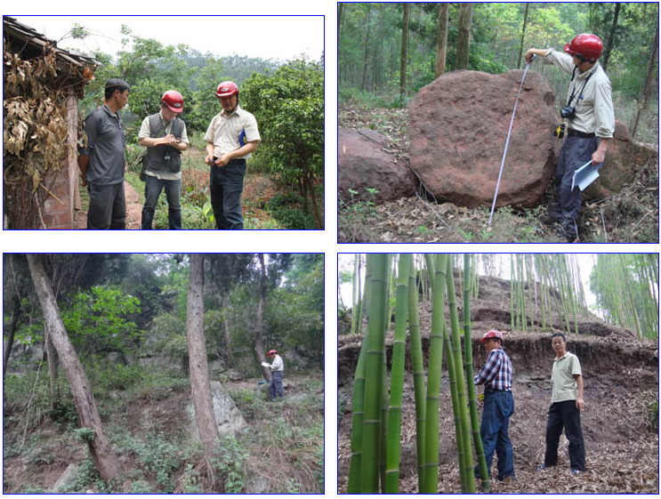 井研县共有27个乡镇。四天来,四个小组的足迹遍布研经镇、东林镇、磨池乡、千佛乡、三墩乡、宝五乡、黄钵乡、周坡乡、乌抛乡、纯复乡、天云乡、镇阳乡、胜泉乡、马踏乡、镇阳乡等15个乡镇,共排查隐患点60处,其中新增13处。本着对灾区人民负责的态度,调查小组不辞辛劳,每到一处,详细了解相关情况,仔细观察灾点特征,精确测量灾体要素,认真记录并提出监测治理建议,尤其对新发现的灾害点均进行充分调查、分析和研究。调查小组还对一处正在治理的崩塌点进行了核查,提出了需进一步工程治理或搬迁避让的建议。位于东林镇高家村刘家凹灾害点,原备案灾害类型崩塌,通过调查小组认真调查、仔细观察,初步分析该点为由岩质滑坡为主因、进而诱发土质滑坡和崩塌的复合型灾害点。