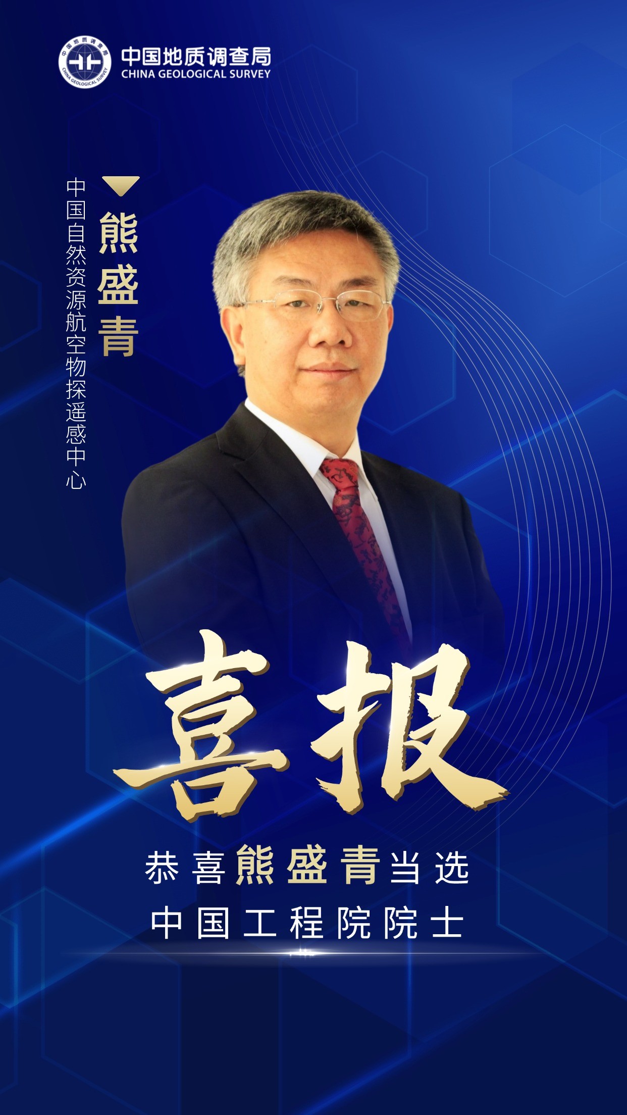 作为我国航空地球物理勘探技术领军人,熊盛青长期负责国家航空物探领域的重大科研与工程项目,带领科研团队不断探索创新——填补了青藏高原航磁空白,创建了我国第三代高分辨率综合航空地球物理勘查技术体系,打破国外关键技术垄断,实现了我国航空物探技术装备从进口到国产的飞跃。享受国务院政府特殊津贴,是国家工程师奖、全国创新争先奖、李四光地质科学奖、黄汲清青年地质科学技术奖获得者,获得国家科技进步特等奖,省部级科技奖,以及“国家高层次人才特殊支持计划”领军人才、全国杰出专业技术人才、“国家卓越工程师”称号、自然资源部高层次科技创新人才第二梯队人员等奖励和荣誉。其所带团队“航空地球物理与遥感地质创新团队”入选首批国家重点领域科技创新团队。
