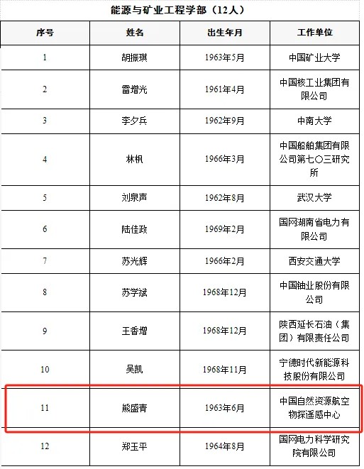 中国工程院公布