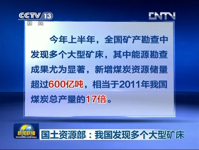 [新闻联播]国土资源部:我国发现多个大型矿床