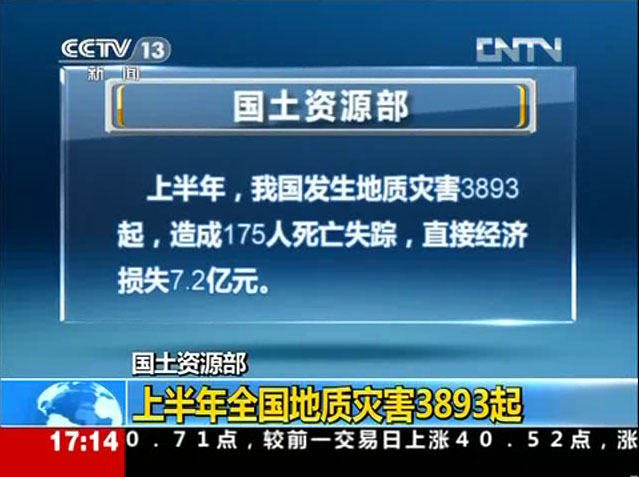 [央视]国土资源部:上半年全国地质灾害3893起