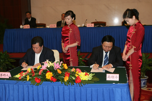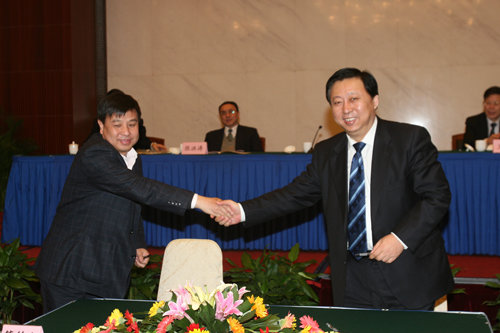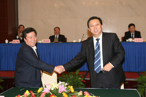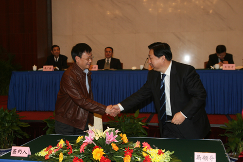国土资源部党组成员、副部长、中国地质调查局党组书记、局长汪民与沈阳地调中心主任单海平签订“廉政建设责任书”