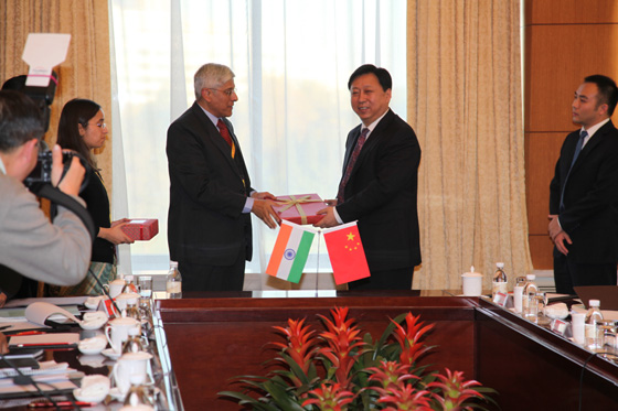 2013年11月3日,汪民副部长会见印度矿业部国务秘书卡瓦贾,双方进行了友好交谈。(赵心浩 摄 徐晓婧 编)