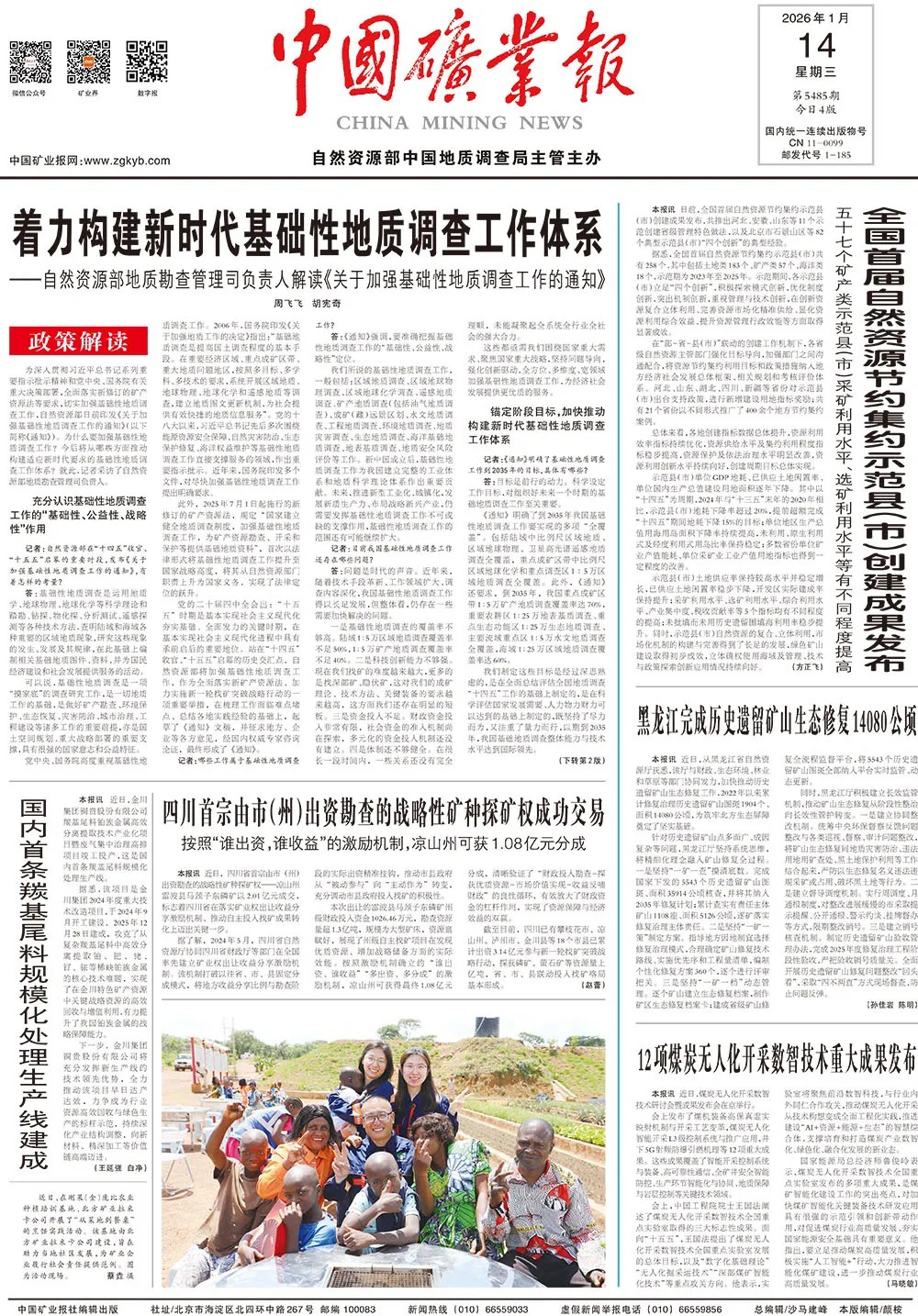 记者:自然资源部在“十四五”收官、“十五五”启幕的重要时段,发布《关于加强基础性地质调查工作的通知》,有着怎样的考量?